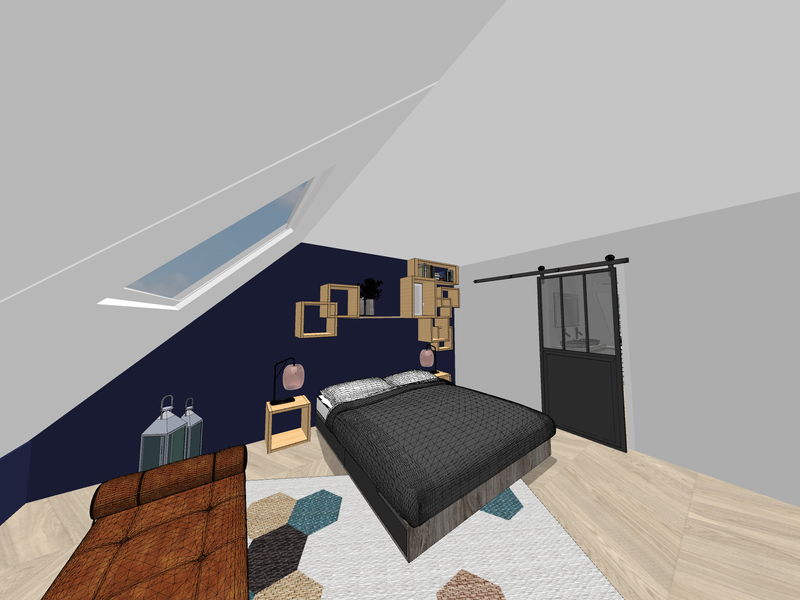 Les propriétaires de cet endroit souhaitaient utiliser un espace autrefois composé de 2 chambres et d'une salle de bain pour y créer leur suite parentale. Ils m'ont sollicité alors qu'ils avaient commencé à casser les murs sans trop savoir où ils allaient. Ils avaient beaucoup de mal à se projeter dans l'espace et souhaitaient donc l'avis d'un professionnel pour l'aménagement de leur chambre, espace dressing et salle de bain. Il a fallu radicalement repenser l'espace pour atteindre ce but et profiter de la lumière zénitale.